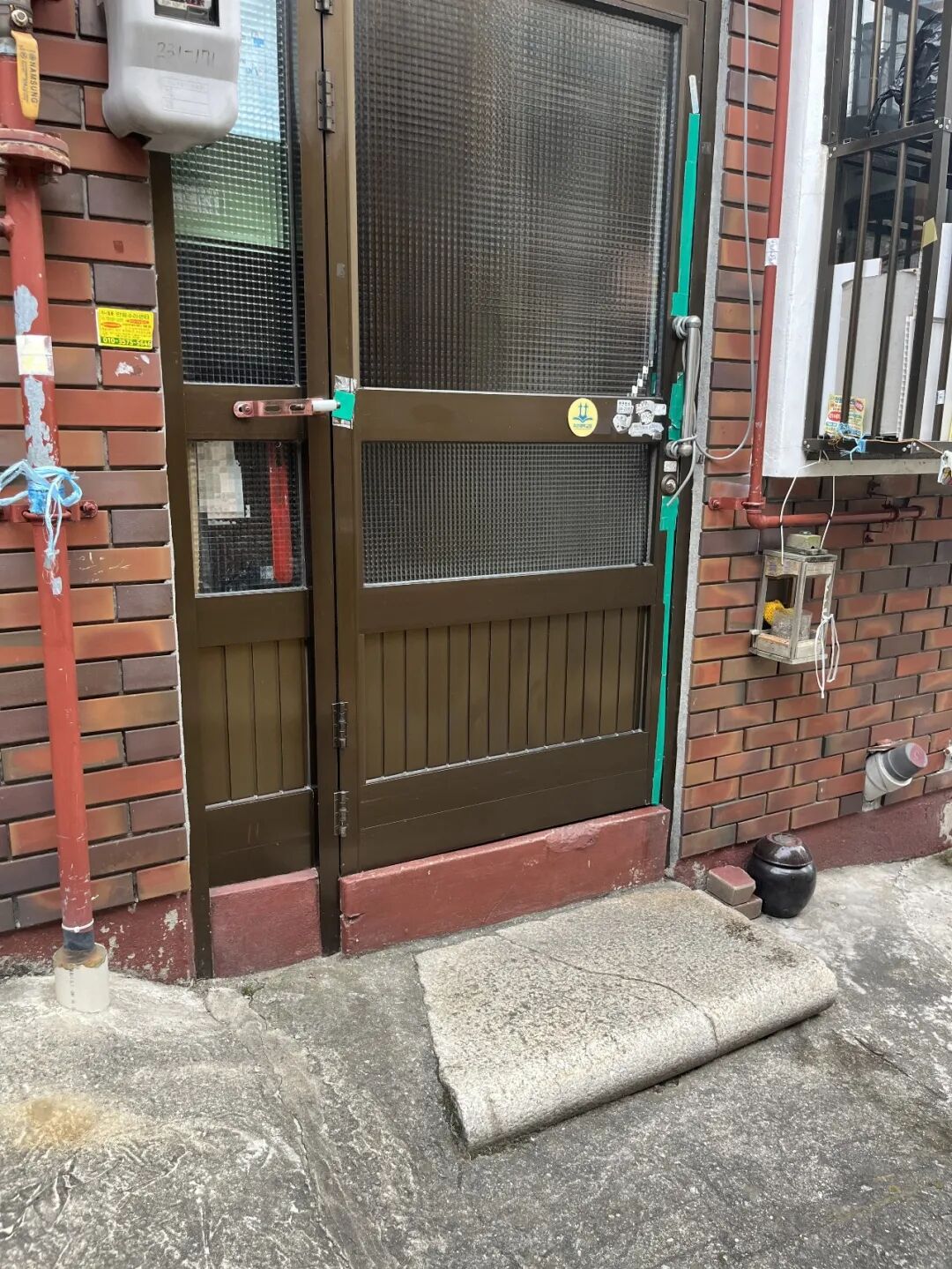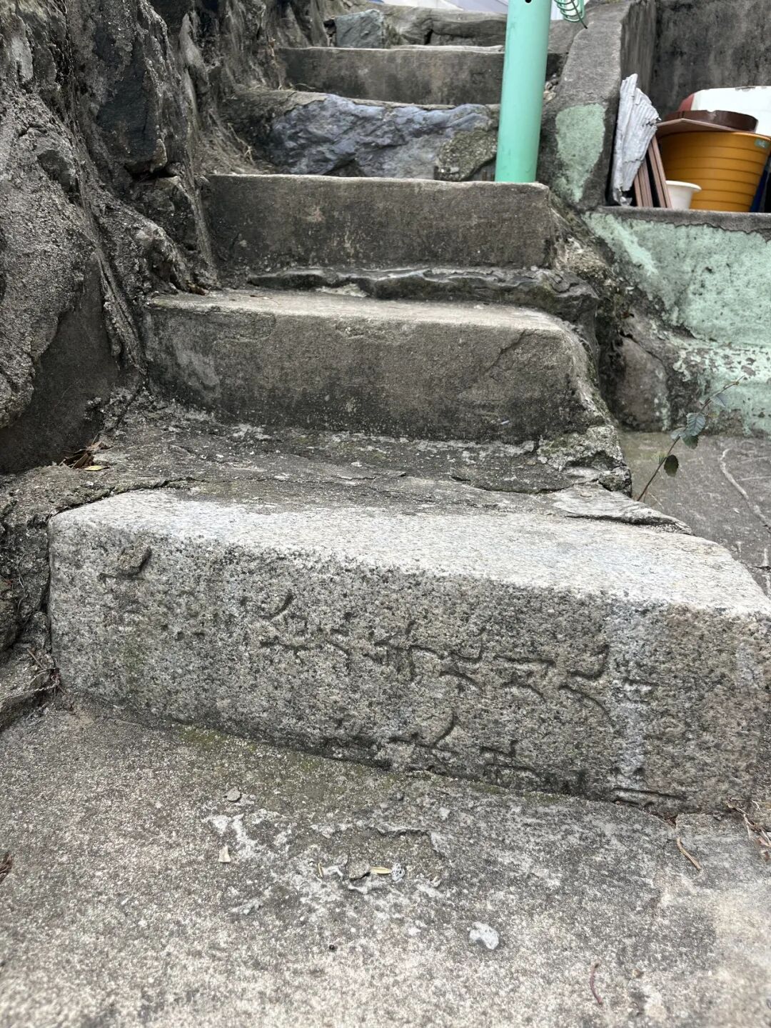 在一处人家屋前,碑石堆成了一个“酱缸台”(장독대),放着发酵大酱、泡菜的酱缸,还有其他杂物。