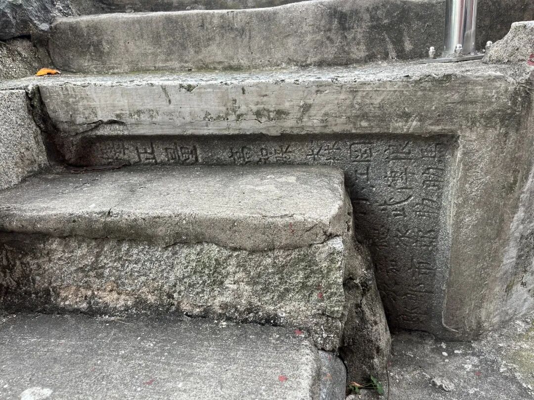 再往上爬,我们找到了儿童的游乐园,这附近也散布了许多碑石。拐角处就露出碑石的一半,写着“妙法贤”,往下的字就看不到了。
