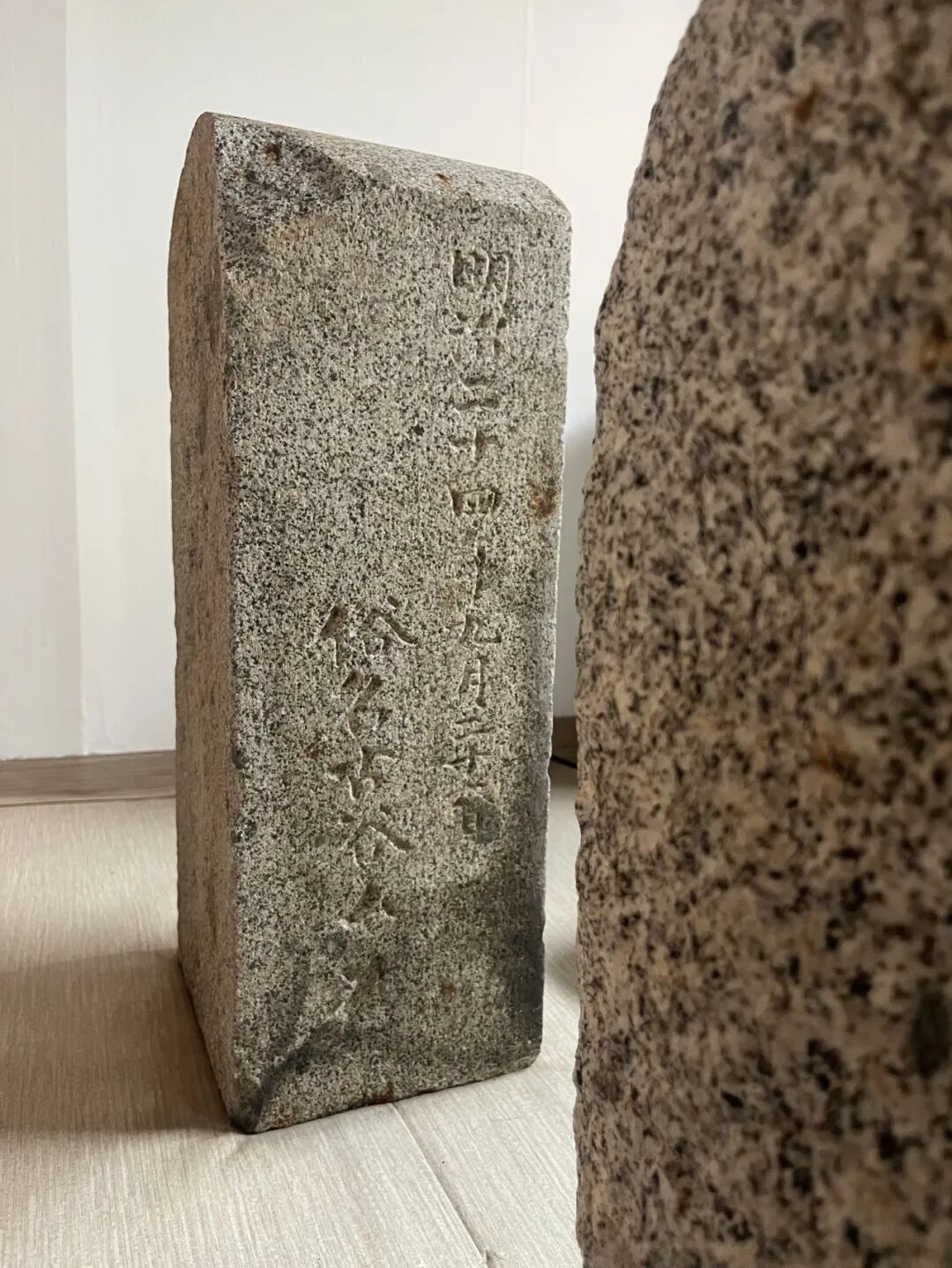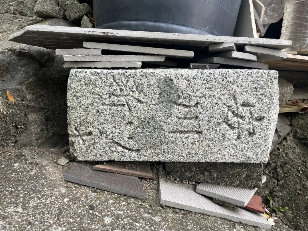 还有一块成了花瓶的垫石,只能看到“安川新”几个字,其他部分不知道被分割到哪里去了。