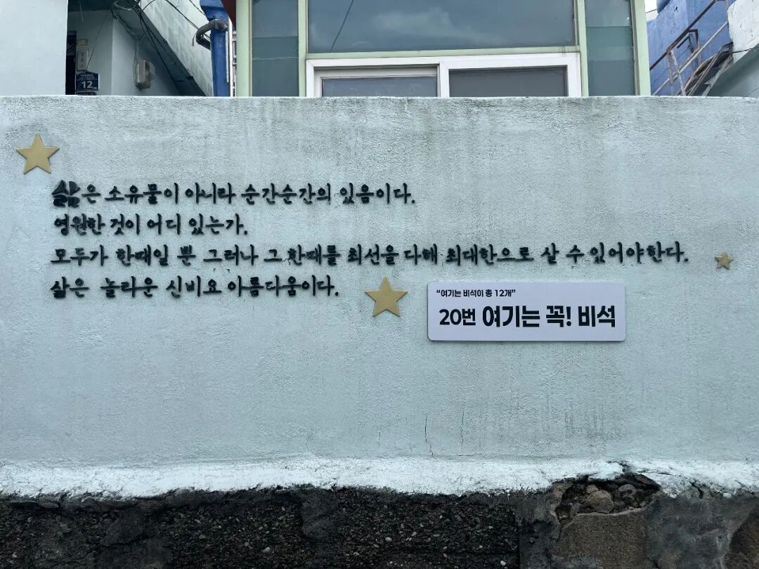 这个地方位于釜山港的西边的峨眉山上,如今也成了釜山推广的观光地,叫做“峨眉洞碑石文化村”(아미동 비석문화마을)。