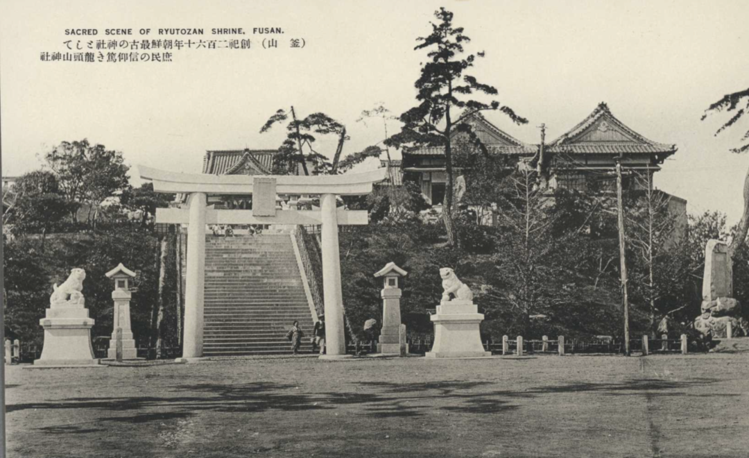 在1906年出版的《满蒙利源调查案内》中,已经提到在釜山的日本居民已经超过两万人,街上风貌俨如日本。龙头山也被开发为“龙头山公园”,山上就有金刀比罗神社(茅村行客 & 今井忠雄: 1906, 4)。后来,神社规模扩大,更名为龙头山神社。