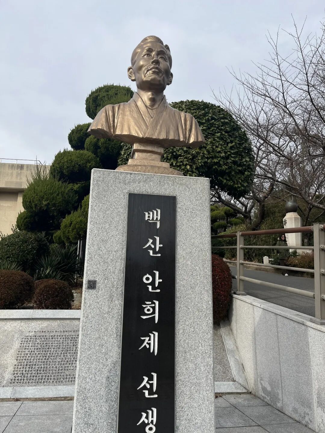 旁边还树立一个半身铜像,这是抗日独立运动的英雄安熙济(안희제)。