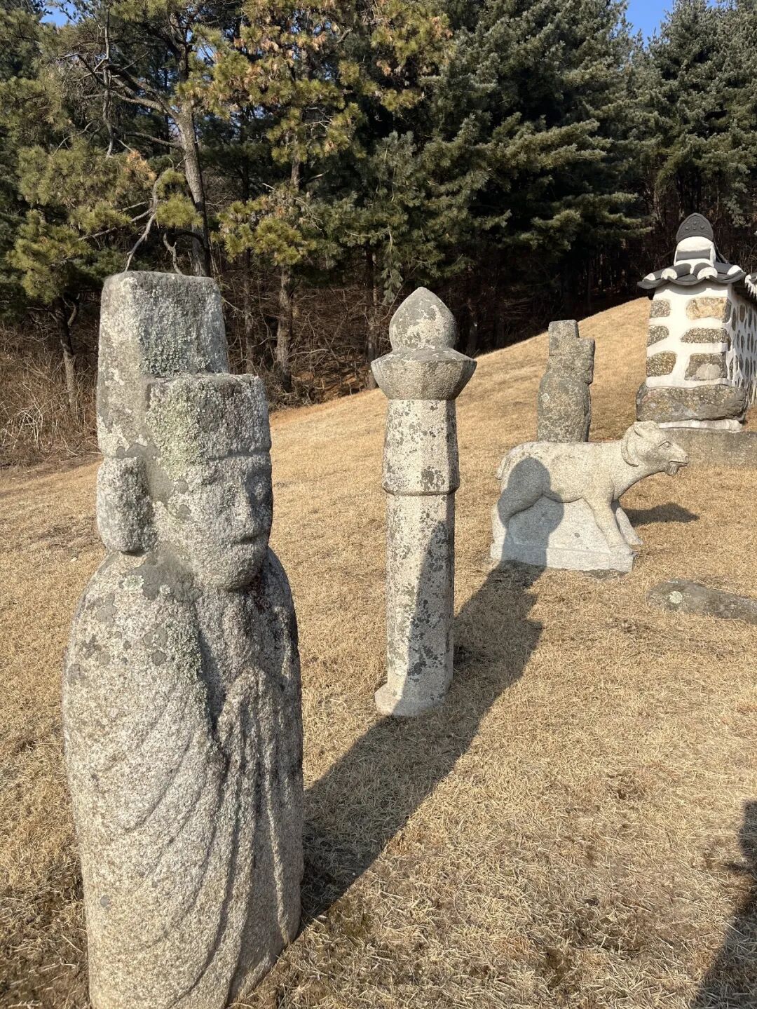 墓前两旁还配有文臣、石羊、石柱等。这些石像有的看起来有点年头,但有的就明显是现代才修的。