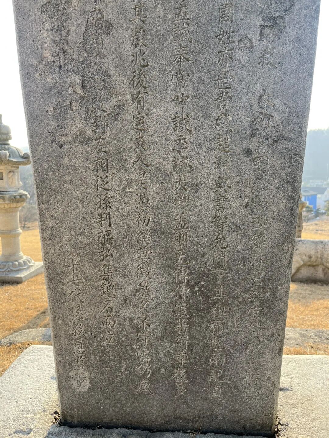 在墓旁,倒是有一个看得出年岁的碑。我问宣庆能不能看懂上面的汉字,她说看不懂。虽然韩国人上学时候要学习“汉文”,认识汉字。但是,如今在实际生活中运用非常少,年轻人其实看不懂大部分的汉字(在韩国逛日文书店,店主说废止汉字很可惜)。